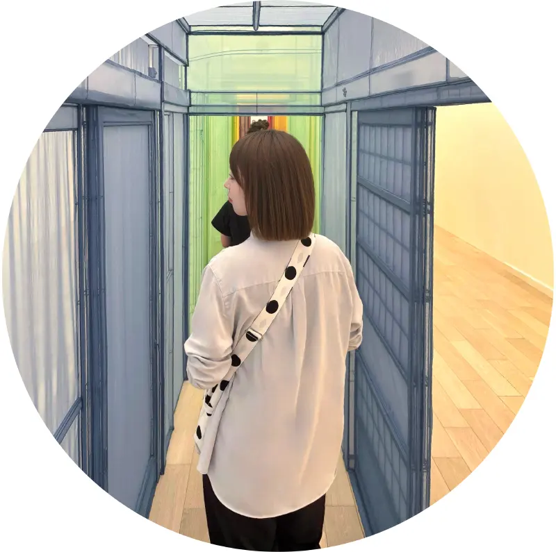 ・壁を頼りに暗闇の中を指定位置まで進んでいくのは、「水曜日のダウンタウン」でアイマスクをされて連れて行かれるときのような感覚なのかな?と思っていました。自分の目が暗闇に慣れていくことや、体験者が加わることで作品が完成する点がとても面白かったです。地中美術館のジェームズ・タレルの作品も印象に残っています。