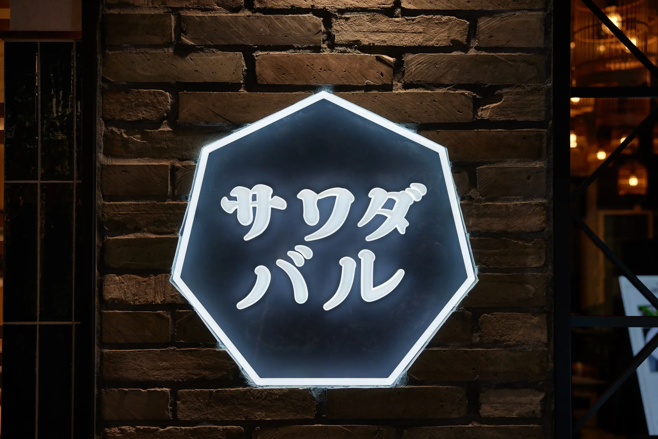 こちらの施工例では、メインの看板にあたるLEDサインは“DIGITEC SIGN SMART BACK”(背面発光)、ディスプレイにあたるLEDサインは“DIGITEC SIGN SMART FRONT/SIDE”(正面/側面発光)で仕上げています。“SMART BACK”は、光によって文字が浮かび上がるような見え方となり、独特な雰囲気を演出します。一方、“SMART FRONT/SIDE”は、デザインを光で前方に押し出すように立体的に見せることができ、より存在感のある表現が可能です。同じフォント・デザインであっても、選ぶ発光仕様によって魅せ方を変えられるため同一空間の中でも多様な雰囲気を表現できます。