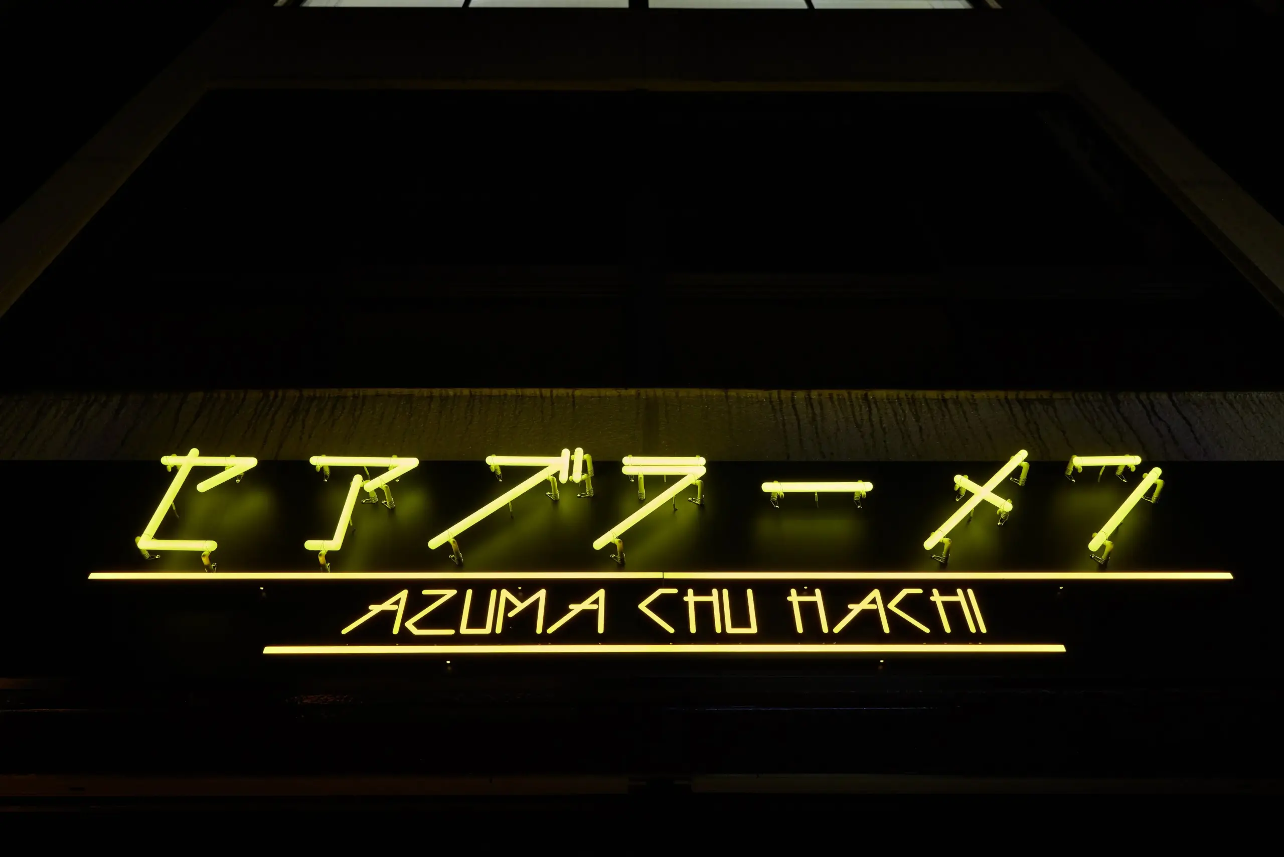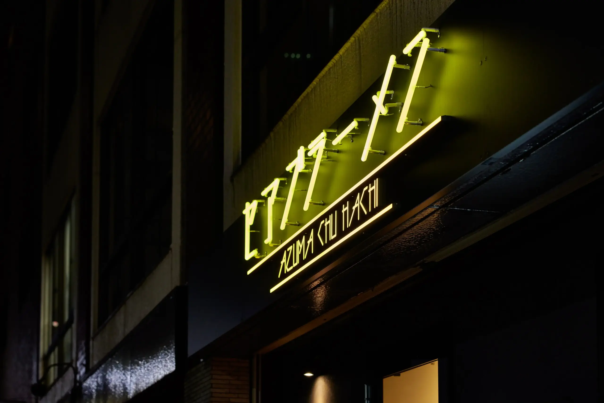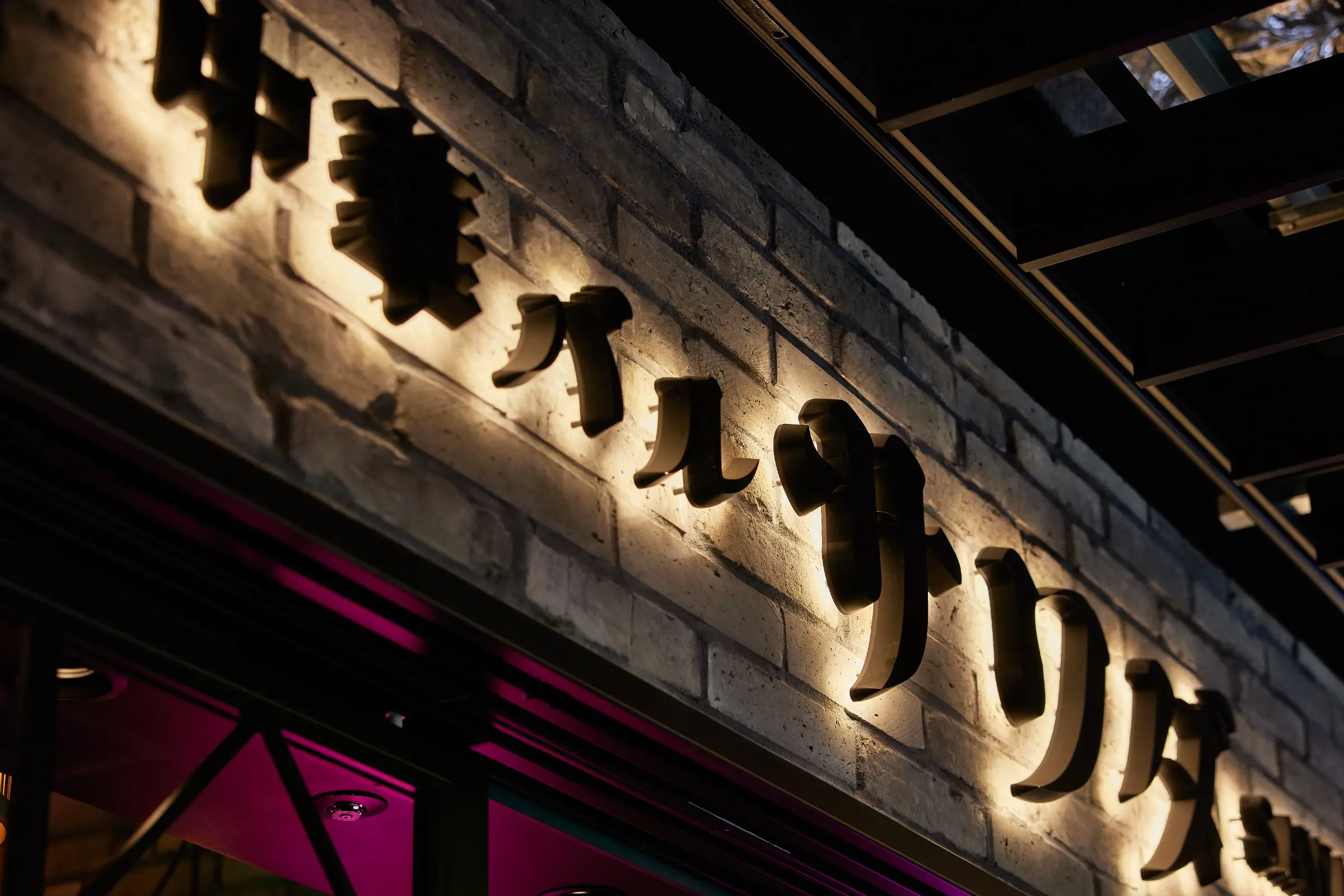 こちらの施工例では、“DIGITEC SIGN SMART FRONT”と、360°発光により本物のネオンサインのような表現が可能な“DIGITEC SIGN NEON360”を組み合わせています。メインとなる上部のサインは“NEON360”で立体的に表現し、下部のアルファベットは“DIGITEC SIGN SMART”ならではの繊細で細い線で構成することで、幾何学的な文字デザインの個性を際立たせています。