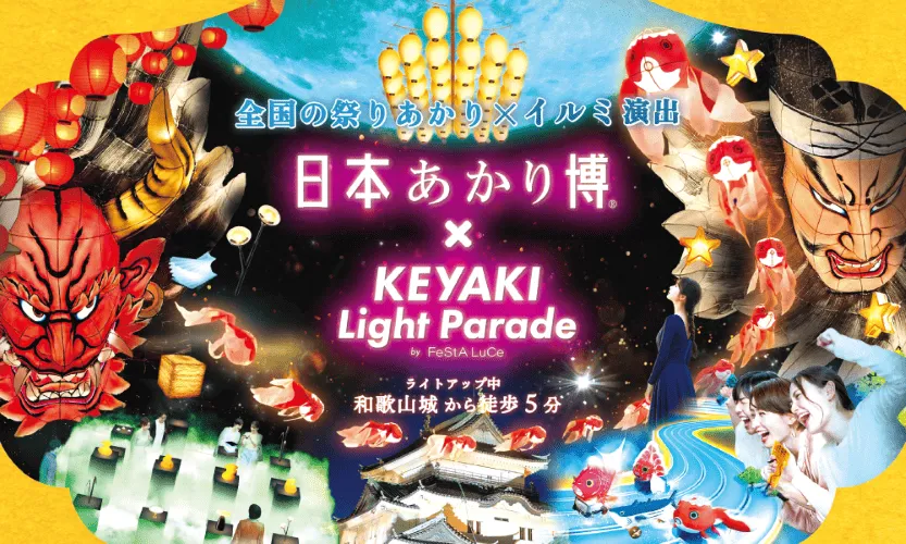 2026年1月17日(土)~3月29日(日)の期間中(金土日祝)、全国の祭りあかりとイルミネーション演出が楽しめる企画展「日本あかり博×けやきライトパレード by FeStA LuCe」が、和歌山にて初開催!