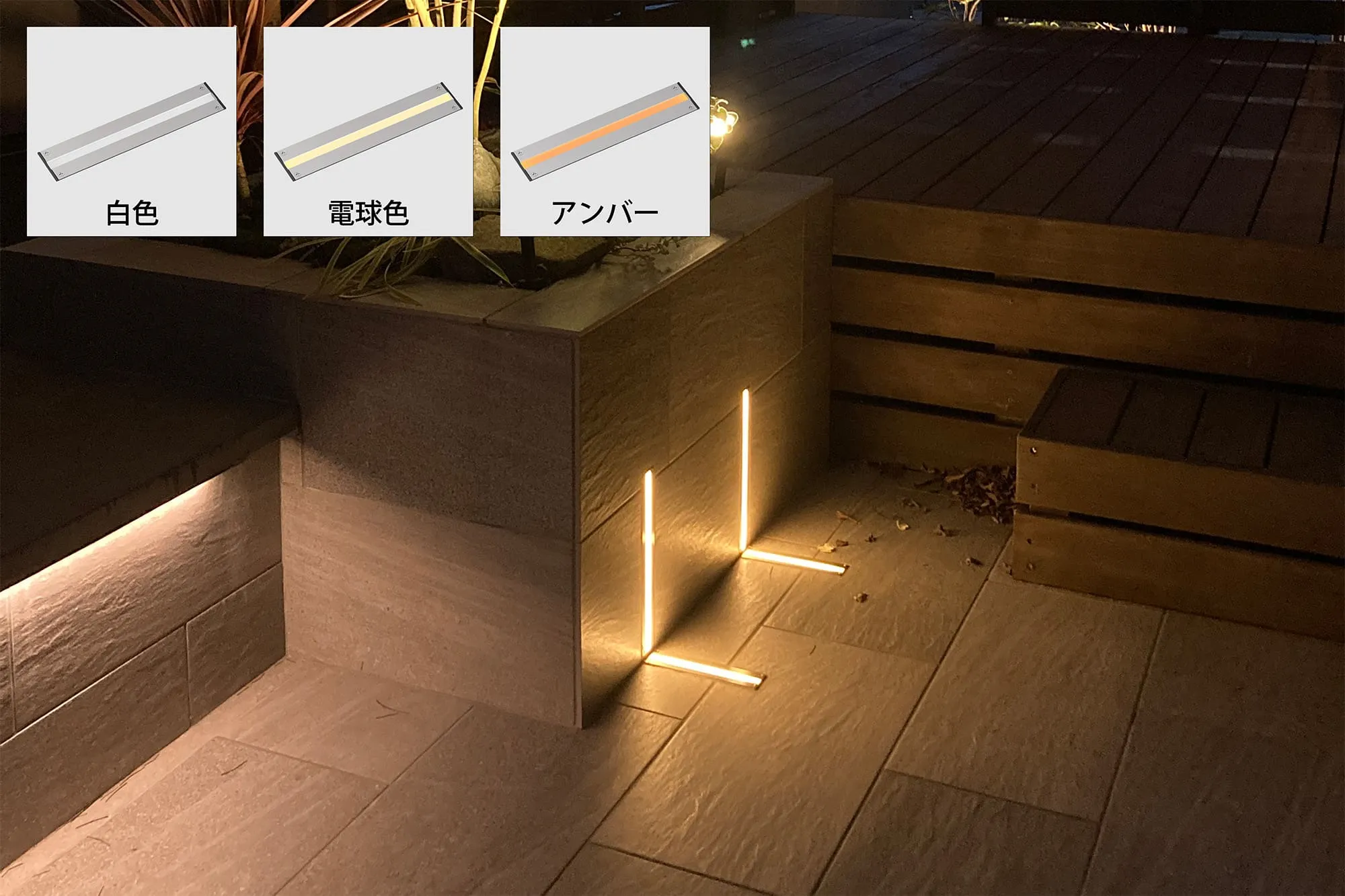 発光色を「電球色・白色・アンバー」にリニューアル。木目などの自然素材になじみやすいアンバーを採用することで、空間にやわらかい印象を与えられます。住宅やカフェ、ホテルロビーなど、落ち着いた雰囲気づくりに適しています。