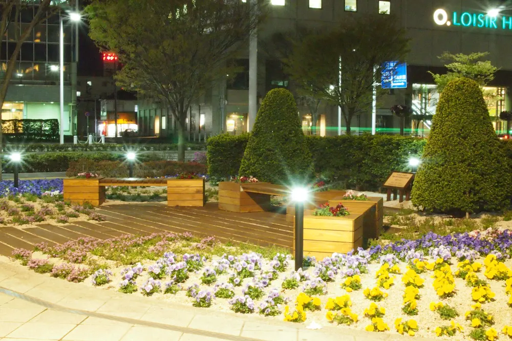 一昔前の屋外のライトアップの空間全体が明るいイメージ
