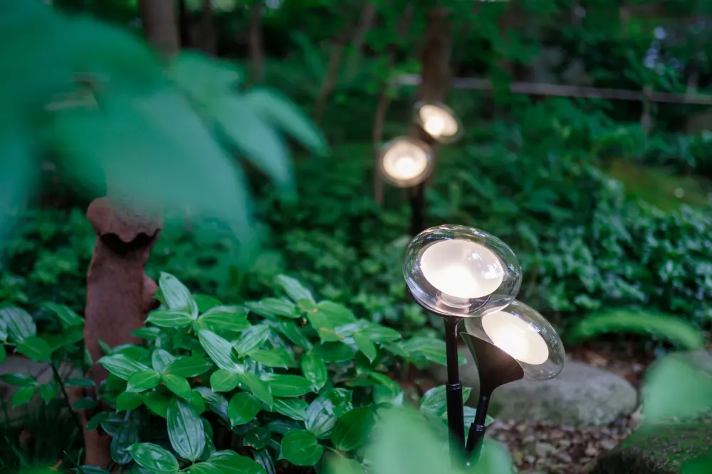 「ライン照明や間接照明が少し形を変えてきた気がしています。建築でもトレンド的には間接照明が主流で、みんな器具を隠すことがここ何年も美徳とされてきましたが、最近また器具の大型化が進んでいて、空間の主役としてのデザイン照明を取り入れるケースも増えてきています。その空間の主役となりうるデザイン照明+間接照明という形です。グランピングの手法として人気のガーランドライトもその1つ。光がいっぱいあって華やかでかわいい。もちろん器具を隠すトレンドも依然としてありながら、一定数器具や光源を魅せる流れがあるなと感じています」と花田さん。甲斐さんも「昔は屋内建築にあったデザイン照明がそのまま外に飛び出してきたようなライトが、今は屋外でも増えていますね。コードレスでバッテリーを充電できるようになって、中と外の境界線がなくなってきている。スタンドライトやペンダントライトなんかがその例です」と話します。