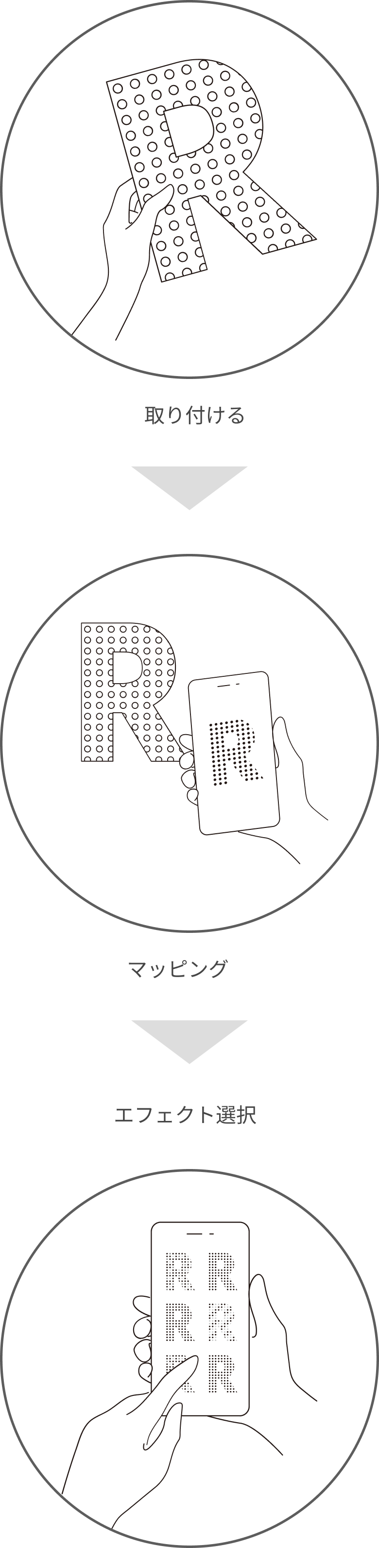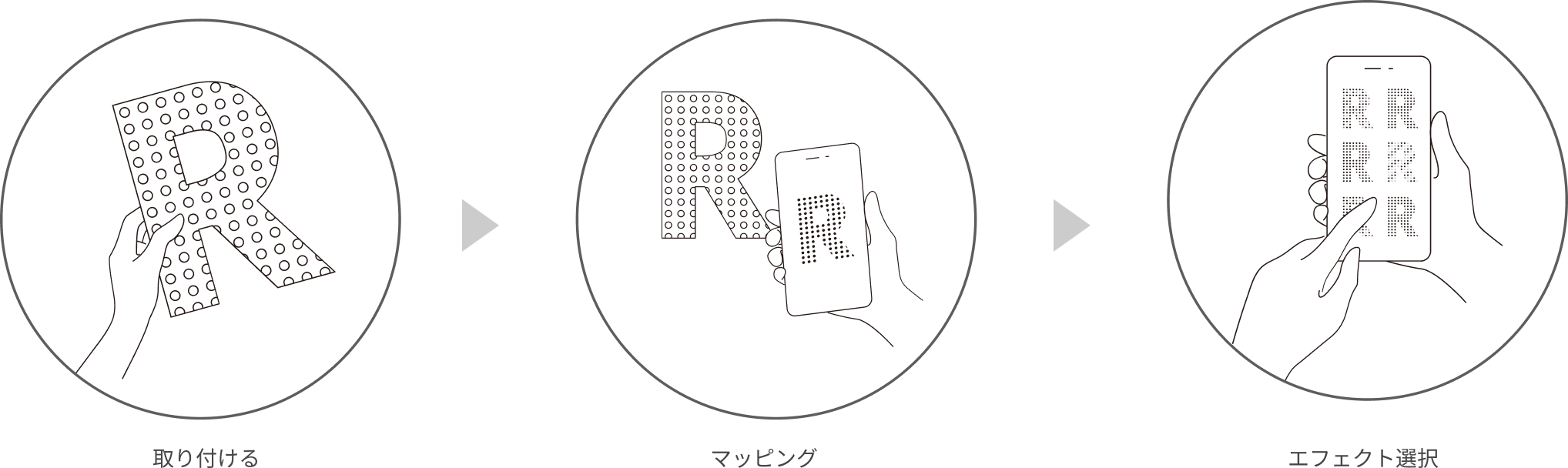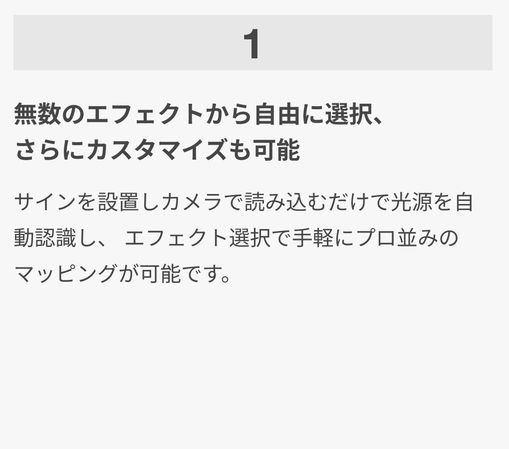 サインを設置しカメラで読み込むだけで光源を自動認識し、エフェクト選択で手軽にプロ並みのマッピングが可能です。