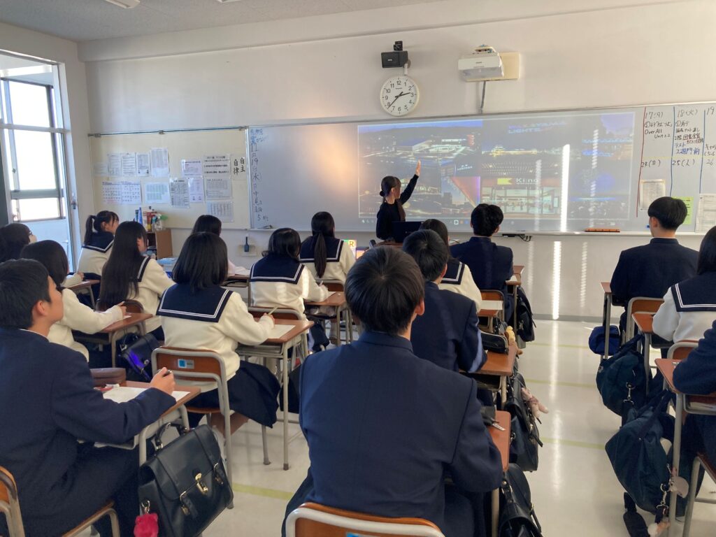 本セミナーは、生徒の皆さんが、「自己理解を深め、将来の進路選択に向けた基盤をつくるとともに、自分の学びが将来につながることや、職業観・社会貢献について考える機会を提供する」ことを目的に同校が実施しているキャリア教育です。当日は、地域の企業などから講師が招かれ、その一社として当社の社員も講演を行いました。
