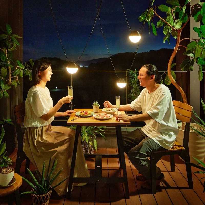 「ひかりノベーション」シリーズは、工具不要、DIY感覚で接続・設置できる手軽さが人気を呼び、2018年の発売以来、累計20万台以上を出荷しているヒット商品です。バルコニーやベランダはもちろん、コーナーなどちょっとした空間も、おしゃれにライトアップすることが可能です。