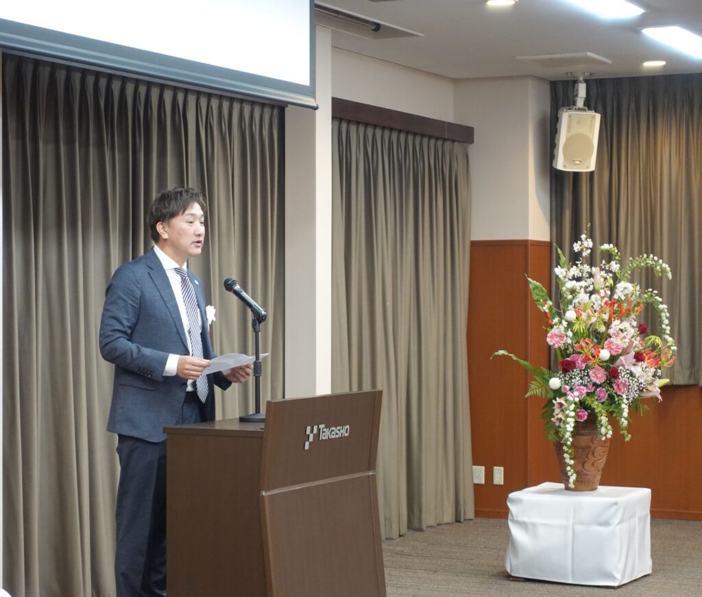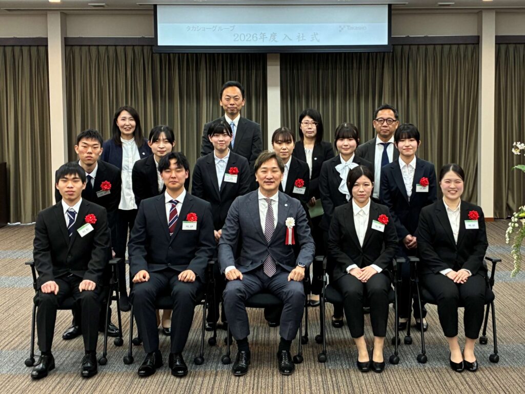 皆さんは、それぞれの思いや志を胸に、このタカショーグループという新たな舞台へ一歩を踏み出されました。今日という日は、皆さんにとって社会人としての第一歩であると同時に、私たちにとっても未来への大きな希望が加わる特別な日です。